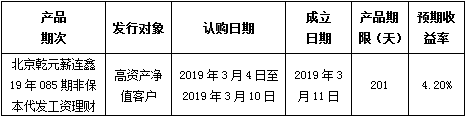 中国建设银行北京市分行定于2019年3月4日发行理财产品,现将相关发行情况公告如下: