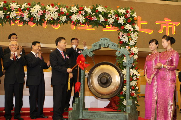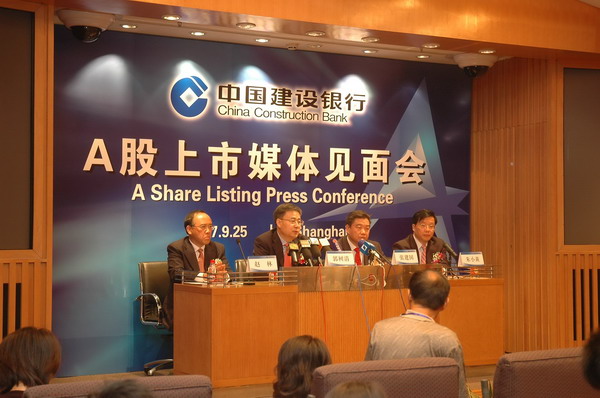 9月25日上午,中国建设银行在上海证券交易所成功挂牌上市。在上证所交易大厅,建设银行董事长郭树清敲响了开市锣声。清脆的开市锣声之后,交易大厅大屏幕上出现了建行8.55元的开盘价,并在盘中一度达到9.05元的最高价,此后,逐步回落,收盘报收于8.53元,比6.45元的发行价高出32.25%。