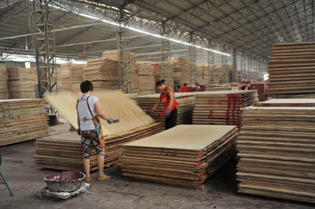 吴建国的福惠板材加工厂,就在位于离徐州市不远的邳县,这里是邳州官湖板材产业集群的发源地。镇上大大小小的板材企业有将近500家,而像福惠板材这样规模的有十几家。作为70后的“创二代”,1997年,吴建国靠着父亲给的100万元做启动资金创业建厂,生产建筑用胶合板,经过十几年的发展,工厂已经颇具规模。凭借着过硬的产品质量, 福惠的产品目前已经占据了50%以上的中东市场。虽然不愁定单,但随着设备、原材料以及人员工资的不断增加,公司的经营成本也是屡屡攀升,“现在的人工成本是以每年10%-20%递增。一线工人的月工资大概在4000元左右,就连找个门卫,工资低于每年25000元人家都不干。”站在堆满板材成品的仓库里,吴建国感慨道。对企业未来的发展,吴建国把更多的目光投向了海外市场,“我们现在主要做国外市场,肯尼亚已经有我们的产品了。随着新兴市场的不断开拓,企业应该还会有一个更好的五年吧。”