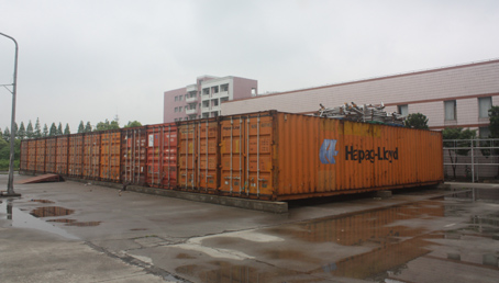 在光隆实业有限公司的厂区,这些集装箱是用来存储布料的,原来这片地计划盖仓库,但经过计算,买旧集装箱来装布料的成本要比建仓库划算,体现了台资企业财务上的精细化。