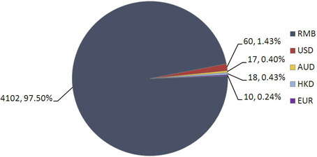 从投资币种来看,人民币产品发行4102款,环比增加325款,市场占比上升0.14个百分点至97.41%;美元产品发行了60款,环比增加7款,市场占比上升0.06个百分点至1.42%;澳元产品发行17款,环比减少3款,市场占比下降0.11个百分点至0.40%;港元产品发行18款,环比增加2款,市场占比上升0.02个百分点至0.43%;欧元产品发行10款,环比减少2款,市场占比下降0.07个百分点至0.24%;英镑产品发行4款,环比持平市场占比下降0.01个百分点至0.09%;本月无日元产品发行。(图2)