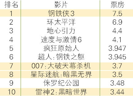 表3 2013年中国进口电影票房排行 单位:亿人民币
