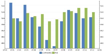 2014年,中国经济将继续在“调结构、促改革”基调中运行。从“三驾马车”的驱动作用来看,得益于以欧美为主的发达经济体复苏,中国外贸整体形势将得到改善,出口增速将继续向好;消费有望保持稳定增长,但对经济的助力作用恐难超出市场预期;在政策和资金约束下房地产投资下滑似乎不可避免,去产能化的推进又让制造业投资回暖的不确定性增大,债务风险的压力也将迫使地方政府减缓基建投资,预计2014年宏观经济很可能保持稳中趋降的态势。考虑到管理层需要为改革顺利推进创造良好环境,预计经济增长“滑出下限”可能性不大。