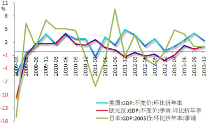 欧洲:截至去年末,欧元区经济保持连续三个季度增长,4季度同比增速进一步提升至0.5%,更重要的是,欧元区经济增长已不再单纯依赖德国支撑,法、荷等二线核心国家的经济已经开始改善,意、西、葡等周边国家经济相应也见底回升。欧元区经济有望逐步回暖,但仍面临竞争力欠奉、青年失业率高企等结构性问题和财政紧缩的影响。