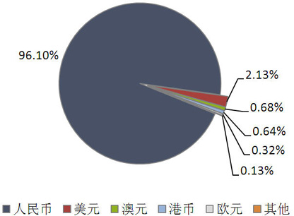 从投资币种来看,人民币产品共发行了2984款,环比增加39款,市场占比下降0.45个百分点至96.10%;美元产品共发行了66款,环比增加14款,市场占比上升0.42个百分点至2.13%;澳元产品共发行了21款,环比增加5款,市场占比上升0.15个百分点至0.68%;港币产品共发行了20款,与上月持平,市场占比下降0.01个百分点至0.64%;欧元产品共发行了10款,环比减少1款,市场占比下降0.04个百分点至0.32%;其他币种产品共发行了4款,环比减少2款,市场占比下降0.07个百分点至0.13%。(图2)
