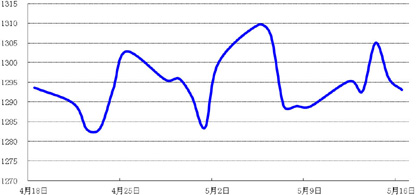 上周初,因乌克兰局势紧张,引发黄金避险买盘,带动国际金价上涨;周五,国际金价受强劲的美国经济数据拖累下滑,收于1293.09美元/盎司,较前一周小幅上涨0.33%。