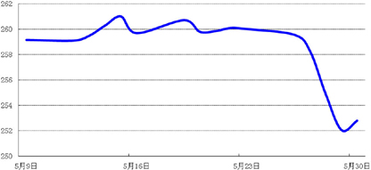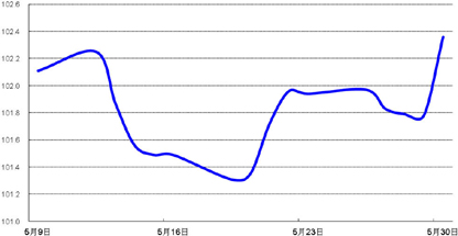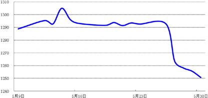 上周,受分红购汇等季节性因素的影响,人民币对美元价格一度大幅下跌,此后小幅反弹。当周人民币对美元即期市场成交价贬值0.17%,但5月累计升值0.19%,结束了2月以来连续三个月连续贬值的势头。