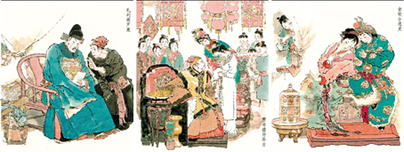 比较30多年前发行的《红楼梦——金陵十二钗》和今年6月21日发行的《中国古典文学名著—〈红楼梦〉》邮票,可以发现两套邮票的风格迥异,前者借鉴了传统绣像的表现手法,以简代繁,工写兼收,通过对十二金钗坐、立、躬、蹲等形态的描写,表现出不同人物鲜明的性格特征,取得了良好的艺术效果。而后者气魄宏大,笔墨雄劲豪放,形象生动传神,生活气息浓郁,画风雅俗共赏。有趣的是,刘旦宅和戴敦邦的艺术生命同样扎根于上海,因此作品均有很深的海派文化烙印。