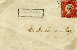为什么“波尔多封”有如此盛名呢?这要从二十世纪初的西方集邮潮说起。1902年法国波尔多省,有个小学生因集邮之需,央求邻居一位退休酒商让他在过去的旧信里搜寻邮品。老人同意之后,这位少年集邮者幸运地找到两个贴有毛里求斯“邮局”珍邮的实寄封!其中一个被称为“波尔多封”的写着“至法国波尔多的杜坎和吕尔涅先生”,销整套邮票的邮戳非常之清晰。戳面的日期是1847年10月4日,离戈姆夫人的那次舞会还不到一周!该封背后有“毛里求斯邮局船运信件普利茅斯”的戳记,还盖有红色的伦敦圆形邮戳。当年为在“黑便士”邮票上留下明显销戳,英国邮戳改为红色。从戳记可知12月24日到达法国的布洛涅港,两天后到达巴黎,12月28日到达波尔多,寄递时间共八十五天!第二个信封只贴着一枚面值2便士的“邮局”珍邮,由于这个学生曾从集邮书刊上看到几年前艾尔伯特·霍华德在印度的收获,便不露声色地把这两个信封珍藏起来。两年后老酒商去世了,为弄清这件实寄封价值,在1904年1月17日他在父母陪同下来到巴黎,将此封拿给巴黎的一位很有名望的邮商托马斯·利梅尔鉴定,这位邮商很懂行,由于这种信封六年前在伦敦以8000美元成交,故邮商也同样以8000美元买下第一个信封。由于第二个信封是黑色邮戳盖在黑色邮票上,利梅尔便以日期不清为借口,只同意用6000美元买下。少年在父母怂恿下卖掉这两件稀世珍宝。1.4万美元当时可买七百两黄金,也够父子三人搬运!