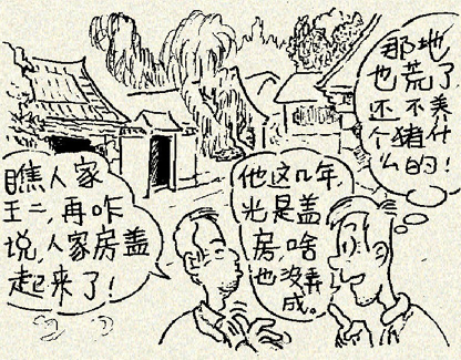 过了一两年,王二的房子盖好了,可日子却没见起色。村里人嘀咕:4个男劳力这几年工夫全花在房子上了,整个被房子绑架了。多花点工夫种地才是正理。
