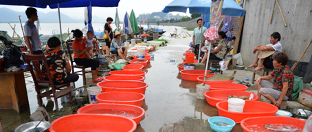 2014年7月19日下午,富春江畔,陈家弄鱼码头和小小的鱼市。