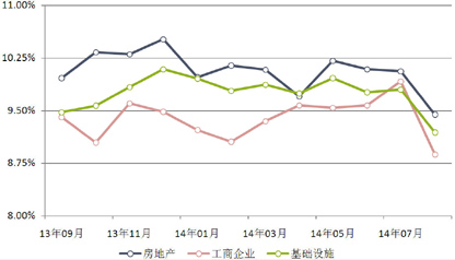 由于市场资金面较宽松,本月集合信托市场预期收益率普遍下跌:1-2(含)年期限段产品平均预期收益率9.04%,环比下降87.80BP,其中,房地产领域平均预期收益率9.44%,环比下降62.22BP,工商企业领域平均预期收益率8.88%,环比下降104.02BP,基础设施领域平均预期收益率9.19%,环比下降61.63BP;2-3(含)年期限段产品平均预期收益率8.86%,环比下降75.43BP,其中,房地产领域平均预期收益率9.20%,环比下降180.00BP,工商企业领域平均预期收益率8.50%,基础设施领域平均预期收益率8.90%,环比下降97.50BP;3年以上期限段产品平均预期收益率7.45%,环比下降482.67BP,其中,房地产领域平均预期收益率7.10%,基础设施领域平均预期收益率8.50%,环比下降250.00BP。(图7)