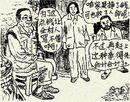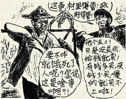 村里饿死了人,王二又被大伙儿骂。觉得如果粮食平均分,就不会有人饿死。王二更委屈了,决定如果再遇洪水,不但不涨价,还要限量供应。