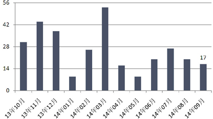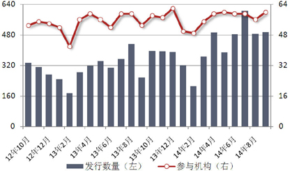 9月银行理财产品发行数量环比小幅上涨,3-6个月期产品市场占比增幅较大。9月各期限SHIBOR价格均表现为下跌走势,可以看出市场资金面继续保持宽松趋势,并未出现季末效应。银行理财产品的收益率与SHIBOR走势较为吻合,所有期限类型产品的平均预期收益率环比均出现下滑。其中1个月以下期限类型产品的平均预期收益率环比跌幅最大。存款偏离度使日均考核加强,理财产品提价时间或将从月末提前至月中;中信信托借众筹突破私募限制9月末与百度等联合发布国内首个电影大众消费平台——“百发有戏”,一期产品为汤唯、冯绍峰主演的影片《黄金时代》。来自普益财富