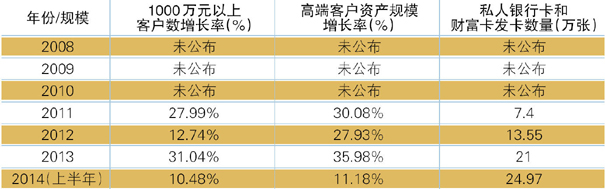 引题:2013年,全球私人财富增值14.6%,总额152万亿美元。中国私人财富大幅增长49%,达22万亿美元,预计2018年将达到40万亿美元。财富市场蕴藏的巨大商机及市场空间得到全球各商业银行和财富管理机构的重视,引发激烈市场与客户资源的争夺。然而私人银行业务正式在中国生根发芽却是在2007年。随着中国经济的不断发展,短短几年间,私人银行业务飞速发展,各大银行纷纷增设这一业务,市场规模迅速扩大。