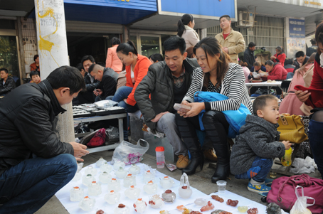 东海县每逢阴历的初八、十八、二十八是水晶大集。水晶城前的街道上摆满了大大小小的摊子,各种各样的石料、造型各异的摆件,五花八门。逢集的这天,不宽的街道会被挤得水泄不通,如果刚好再赶上个周末,更是人头攒动,闲逛的、捡漏儿的,喜不喜欢水晶另当别论,享受这节日般的气氛才是重点。但对于像王立国这样的圈儿里人来说,大集还有着更重要的意义。高手在民间,有好多小作坊的作品会在大集上亮相,没准被喜欢的人见了,就收了,接下来还可能会带来定单,所以,这水晶大集无形中也成了民间高手“斗宝”的舞台。王立国、李彩霞夫妇俩逢集必去,老婆摆个摊子卖货,老公去买石料,也借机看看别人做了什么好东西。