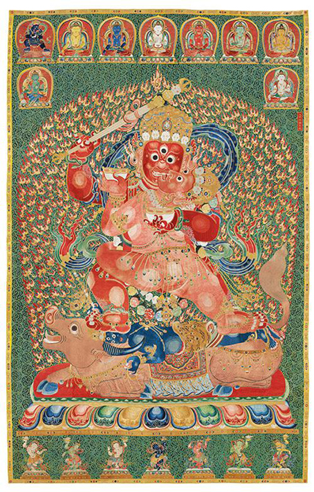 明永乐御制红阎摩敌刺绣唐卡