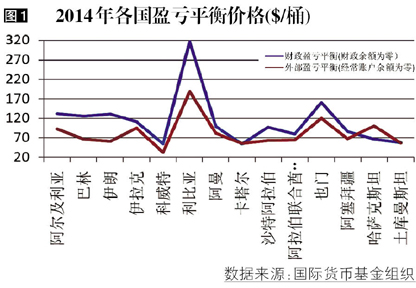 关于各国的生产成本可见图1,据国际货币基金组织在2014年的测算,伊拉克、伊朗等国避免财政赤字需110-130美元/桶的高价,沙特、阿联酋等国维持财政收支平衡需要油价在80美元/桶上下。油价下跌使各国不得不竭力保持产量、扩大进口才能避免收入锐减。