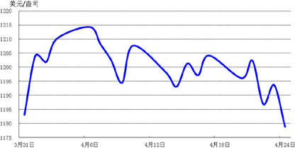 上周初,美元走软刺激国际金价一度上涨至1200美元,但随后美国楼市数据强劲提振美国加息预期,带动美元反弹,打压国际金价,周五收盘于1178.87美元/盎司,较前一周下跌2.1%。