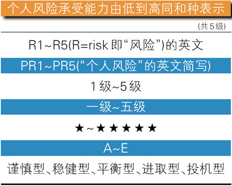 依照中国银监会《商业银行理财产品销售管理办法》,银行需对客户风险承受能力进行评估,由低到高至少分为五级。