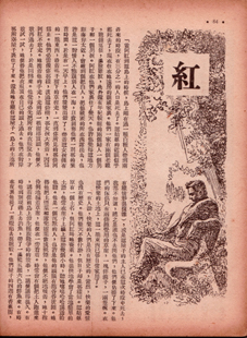 抗战胜利后,社会舆论对张爱玲多有责难,皆因她与汉奸胡兰成的婚恋关系。一九四五年十一月,曙光书店出版发行一本小册子,书名叫《文化汉奸》。书中列出柳雨生、张资平、胡兰成、苏青等十七个文化汉奸,一一给予鞭挞揭露,张爱玲也在其中,被谴为“红帮裁缝”。文中说张爱玲“爱虚荣,要出风头去,被一群汉奸文人拉下水,又跟胡兰成那种无耻之徒鬼混,将一生葬送了”!无奈之下,在大光明大戏院担任外国原版影片“译意风”(类似同声翻译)的姑妈,决意为张爱玲换个环境。这样,她们搬出爱丁顿公寓。起先迁入静安寺路梅龙镇弄内重华新村,几年后又迁往派克路(今黄河路65号)卡尔登公寓(今长江公寓)。期间,张爱玲埋头写作,从小说《华丽缘》《相见欢》,到电影《不了情》《太太万岁》。但报刊上以张爱玲署名的作品已大为减少,还时遭退稿。这大大打击了她的自尊。同时,这也意味着靠稿费生活的她,渐渐陷入困境。这些,沈寂颇能理解。本来,他是不敢轻易约张爱玲、苏青这些人稿子的。时至一九四八年底,沈寂正在革新《春秋》杂志,想办得更纯文学一些,在一时稿源匮乏之下,他想到了张爱玲,不宜用真名发表创作作品,就请她以翻译一些外国作品。张爱玲从圣玛丽亚女校(今市三中学)毕业,就读过香港大学,有扎实的英文根底,又爱好外国文学,早年曾给英国《泰晤士报》和英文杂志《二十世纪》写文章,翻译对她来说轻车熟路。沈寂写信约张爱玲寄稿,很快,张爱玲寄来了一篇题目为《红》的文稿,约四千余字,没有完稿,亦没有署名。沈寂看后,觉得是对毛姆原著的改写,文字风格则是张式的。张爱玲说明道:因在创作剧本,没有全部完稿,很是抱歉云云。同时,把美国“企鹅版”毛姆小说原著附来。沈寂读的是复旦大学西洋文学系,对外国文学自然烂熟于胸。他很快根据原文,译完余下的三分之一文字,文末还写上“本篇完”,编入《春秋》一九四八年第六期“小说”栏目,在内页《红》的题目处,沈寂请人配了题头画,中间留了空白,如何署名以及用翻译还是改写,一时未定。却因发排时间紧迫,在目录处误将吴江枫翻译毛姆作品时用的笔名“霜庐”,写在了此文下,又疏漏了在正文标题中写上作者名。这样,不看前面目录,不知作者为谁,只是此文与鲁彦的《家具出兑》,田青的《恶夜》等排在一起,给读者造成这是一篇原创小说的感觉。刊物印出,张爱玲收到样刊后,自然喜出望外,内心感激着谷先生。张爱玲改写毛姆作品未完,沈寂曾予续译救场。作者与编者的默契合作,这实在是张爱玲的一则文坛轶闻哪。