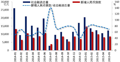 图8 1-5月社会融资规模同比少增,信贷投放规模同比多增