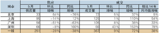 表1 5月份重点城市供求表现 (单位:万平方米)