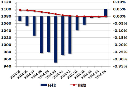 另,中国房地产测评中心最新发布的228指数显示,2015年5月,深圳一手房价格指数为1172.4点,较上月上升25.3点,环比上涨2.21%,涨幅较上月扩大0.66个百分点,同比上涨3.67%。(图1、图2)