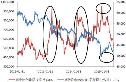 图9 沪铜期货持仓量与价格走势关系