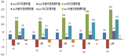 目前信用债与口农债的利差已经低于历史1/4分位数,离历史最低点仅有8-47bps的空间,如果考虑资本占用,对银行来说,除非考虑全行的综合收益,其吸引力已不如口农债。而目前高等级信用债又多了一个可比品种,那就是地方政府债,如下图所示,AAA与地方政府债的利差(已考虑免税效应)已经倒挂41-64bps。因此AAA信用债对银行自营资金、理财资金以及交易性资金都缺乏吸引力。我们预计高等级信用债利差收窄空间有限,在8月或许会小幅反弹。AAA的收益率下行可能要依赖利率债的带动。