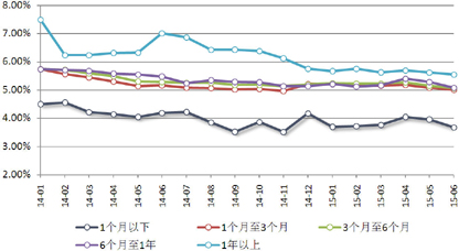图3 2014年1月至2015年6月银行理财产品月度平均预期收益率