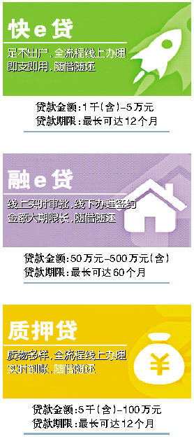 “快贷”依托于互联网平台,通过建行网上银行自助操作的信用贷款。针对有按揭贷款房屋抵押的客户,还提供了大额抵押贷款等产品,同样可以实现在线申请、在线审批,客户只需要到线下一次办理签约、抵押登记等手续即可。此外,针对在建行有定期存款、电子国债、理财产品等可以质押的资产的客户,也可在网上全流程自助办理质押贷款,从而盘活金融资产,客户也可以随时还款等,也无需再到网点。