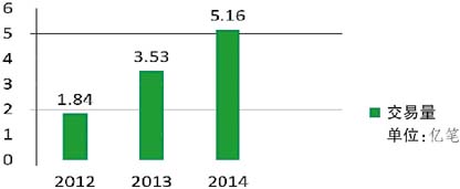 图1 2012-2014年银企直联业务交易量增长情况