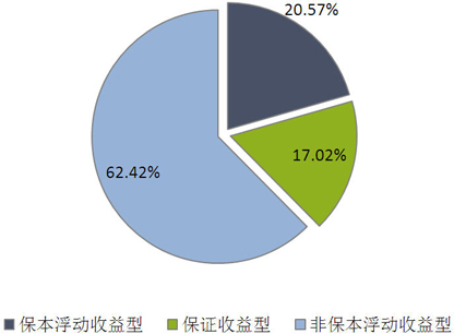 从收益类型来看,保证收益型产品发行了945款,环比增加381款,市场占比上升8.00个百分点至17.02%;保本浮动收益型产品发行了1142款,环比减少317款,市场占比下降2.76个百分点至20.57%;非保本浮动收益型产品发行了3466款,环比减少766款,市场占比下降5.24个百分点至62.42%。(图1)