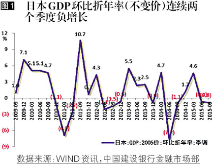 日本:日本2015年三季度GDP初值显示,剔除物价因素后,当季日本GDP环比实际下滑0.2%,前值为下滑0.3%;GDP环比折年率为下滑0.8%,前值为下滑0.7%;GDP同比下滑0.8%,前值为下滑1.2%,连续两个季度呈萎缩状态。分项来看,当季GDP个人消费环比增长0.5%,前值为下降0.7%,时隔一个季度重新转为增长,显示消费有所回暖,或与秋季长假带动作用有关;企业投资方面,尽管日本首相安倍晋三呼吁企业将现金收入用于资本投资,企业却仍持观望态度,汽车业和建筑业萎靡不振。日本国内消费和投资需求尚没有恢复到能够抵消海外经济疲软影响的程度,日本汽车等产品销售欠佳导致库存积压,去库存化影响企业生产,进而拖累GDP表现。(图1)