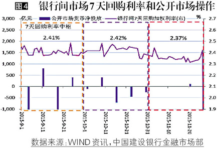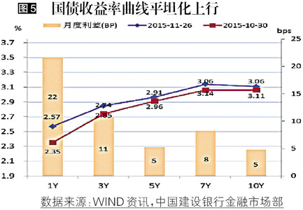 2015年11月资金面较10月略宽松,债券收益率曲线平坦化上行,信用利差明显拓宽。展望后市,预计12月资金面扰动增加,利率债收益率低位震荡,信用债呈震荡行情,需加强甄选。