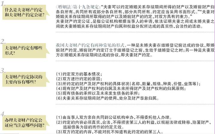 编者按:如果你正准备结婚,你会不会去做婚前财产公证?如果你的爱人要求进行财产公证,你会不会认为这是对感情的亵渎?两人生活在同一屋檐下,寻常夫妻需要分担日常庶务,必然产生金钱与财产问题,诸如工资、储蓄和其它收入,婚姻的背后总有着“避风港”和“庇护所”的价值和经济功能。爱情是人世间最美好的东西,但是婚姻让这美好的爱情变得很现实,然而夫妻财产约定让婚姻变得更为现实。夫妻二人在“卿卿我我”和睦相处时,很难将情感与金钱相联系,于是这似乎都不是问题。然而,一旦二人世界风云突变,甚至发展到决裂程度,“算账”的时刻就会来临,事前不做考虑,此时此刻可就要后悔莫及。大到房屋、企业,小到汽车、家具应该归属于谁?日常生活支出、债务、贷款又该由谁来负担?最明智的是,在双方决定共筑爱巢那一刻,便坦率接触金钱问题,打下建立成功夫妻关系的基础,至少可以避免日后引起冲突和纠缠进庸俗的秋后算账。“多多少少,咱们之间不计较”是家庭最原本的生活哲学,碍于传统观念,谁也不愿意早早就在步入婚姻殿堂之前就立下“规矩”,婚姻约定财产,到底是对另一半的不信任,亦或是对婚姻缺乏信心的表现?还是意味着现代人对婚姻生活越来越理性?对于诸多疑惑,本期就来聊聊婚姻与财产的那些事儿。
