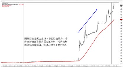新兴市场国家货币对美元在2015年都呈不同程度的贬值趋势。主要原因有三个方面:一是美联储与新兴市场国家在货币政策上的背离使得新兴市场货币承压。二是风险情绪在2015年8月的上升使得短期资本大量流出,推升新兴市场国家贬值。其中,因外汇储备无力支撑本币的贬值压力,哈萨克斯坦宣布放弃固定汇率制,哈萨克斯坦坚戈迅速贬值,USDKZT全年下跌约86%;阿根廷于12月16日宣布结束外汇管制,阿根廷比索全年贬值约51%。三是石油价格下跌拖累石油出口国家货币走贬。其中,USDRUB上涨约25.7%,USDMYR上涨约22.7%,USDZAR上涨约33.8%。
