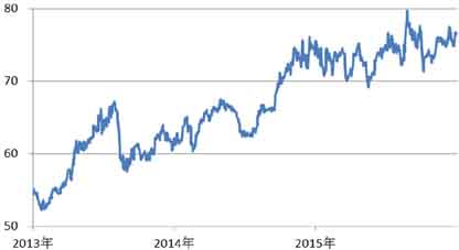 2015年金银比价大致在70到80的范围内震荡走高,不过上升速度较前两年大大放缓。虽然目前金银比价处于近年来的高位,但尚未出现能够改变这一趋势的力量。当前全球经济依然脆弱,白银工业需求难以增长,而黄金的避险属性却能够充分发挥。此消彼长,黄金相对于白银的强势便得以体现。预计2016年的金银比价将在75到85的范围内震荡走高,极限高位主要取决于白银的探底位置。(图8)