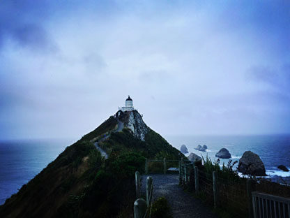 Nugget Point,是Otago海岸上最独特的地貌,这是一座十分陡峭的山岬,山顶矗立着一座灯塔。由于常年的狂风肆虐,使得这里的树和草已逐渐形成了倾斜的生长。
