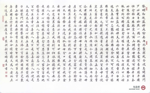 杨建臣先生十分强调基本功的训练。所以在杨建臣先生的作品中,总是能够感受到一种沉着安稳,灵动飘逸的气息,如同清风扑面而来。再细观杨建臣先生小楷的单字,用笔轻松,点画灵活多变,字形多为左右取势。字中的撇捺等笔画有时候进行适当的夸张和伸长,笔力运送到位,使本来有些平正的小楷书法变得遒劲有力,神采飞扬。而在章法构成上,字的大小不同,字距、行距变化自然,表现得精妙非常,奇趣横生!小楷书法风致清和,用笔简远,单字不仅结构严谨,字形秀美,而且从中可以看出一种来自文人的温文儒雅之气,虽无雄浑的气势,却具晋唐书法的风致,能够做到这一点,需要书写者具备静得下来的心境,需要书写者对每一个字的结构造型有着深入熟练的把握,还需要书写者有静逸的心态,这是最考验一个书家综合素质的。