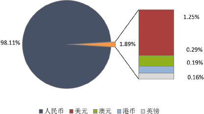 从投资币种来看,人民币产品发行了7854款,环比增加220款,市场占比上升0.04个百分点至98.11%;美元产品发行了100款,环比减少13款,市场占比下降0.20个百分点至1.25%;澳元产品发行了23款,环比增加4款,市场占比上升0.04个百分点至0.29%;港币产品发行了15款,环比增加7款,市场占比上升0.08个百分点至0.19%;英镑产品发行了13款,环比增加3款,市场占比上升0.03个百分点至0.16%。(图2)