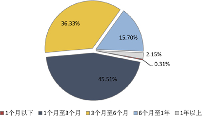 受季末因素的影响,本月下旬短期限SHIOR呈现出上涨态势,但中长期则不然。此种情形与银行理财市场表现一致,本月银行理财产品的收益水平整体上继续保持下滑态势,人民币银行理财产品的平均预期收益率跌至3.81%。除了1个月以下的超短期产品利率出现小幅上涨而外,其余各期限类型人民币理财产品的平均预期收益率均出现下降。(表1)