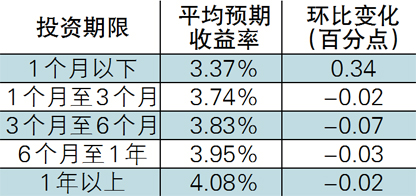 收益表现:短期产品和长期产品收益反弹,中期产品略为下降
