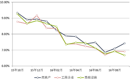 从收益方面来看,1-2(含)年期限段产品平均预期收益率为6.96%,环比上升5.05BP,其中,房地产领域平均预期收益率为7.42%,环比上升32.64BP,工商企业领域平均预期收益率为6.91%,环比下降2.65BP,基础设施领域平均预期收益率为6.66%,环比下降25.72BP;2-3(含)年期限段产品平均预期收益率为6.90%,环比下降3.44BP,其中,房地产领域平均预期收益率为7.67%,环比下降103.33BP,工商企业领域平均预期收益率为7.30%,环比上升80.00BP,基础设施领域平均预期收益率为7.10%,环比下降20.20BP;3年以上期限段产品平均预期收益率为6.36%,环比上升7.92BP,其中,房地产领域平均预期收益率为6.00%,工商企业领域平均预期收益率为6.40%,基础设施领域平均预期收益率为6.33%。(图6)