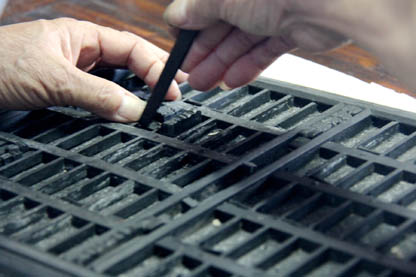 参观展厅过程中,王士生还用瑞安方言诵读木活字印刷的排版“捡字诀”:“君王立殿堂,朝辅尽纯良。庶民如律礼,平大净封张……”听来煞有意趣。熟悉“捡字诀”便于迅速排版,只是这158个字的歌诀,外人听来,还是如坠云里雾中的。