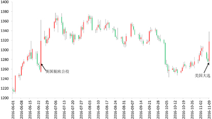 有人说,美国和英国这哥俩是在比赛,看谁更会自残,英国显然已经以公投退欧领先了一步,美国这次自然也不甘示弱。其实在美国的政治制度下,不管是希拉里还是特朗普当选,其个人主观意志对政策的影响有限,背后起决定作用的还是政党的立场。市场现在的恐慌主要是来自于不确定性,但不确定性并不一定导致灾难性的后果。金融市场的震荡更多地是在利用事件的变化来宣泄情绪。我们判断,市场对特朗普的当选有些过度反应,且机构投资者趁机建仓或获利了结,市场此后会有回调的可能。从大选结果公布的次日(美国当地时间的9日)市场的收盘情况来看,美元指数不仅收复了失地,甚至尾盘还收涨0.81%;黄金则回吐60美元涨幅重回1280下方美元/盎司;美国三大股指全部收涨。