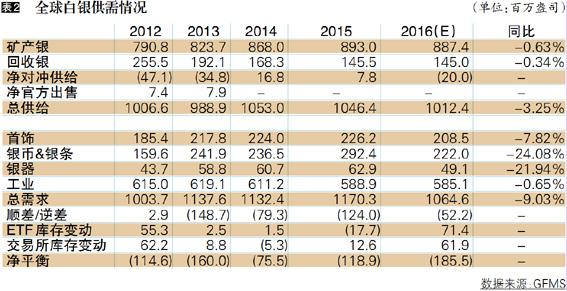 与黄金显著不同,白银基本面已维持数年供给缺口。2016年银价上涨,一度处于高位,但工业需求基本平稳,凸显白银作为重要工业原料的消费弹性较差。较好基本面将支撑白银长期走势。