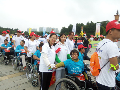 刘文谦加入观山湖区残疾人马拉松比赛志愿服务队,为参赛的残疾朋友提供现场帮扶。
