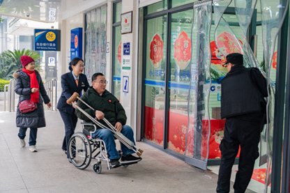 “文谦公益”志愿服务队开展“悉心构筑服务通道 持续传递建行大爱”活动,为残疾客户提供一对一服务。